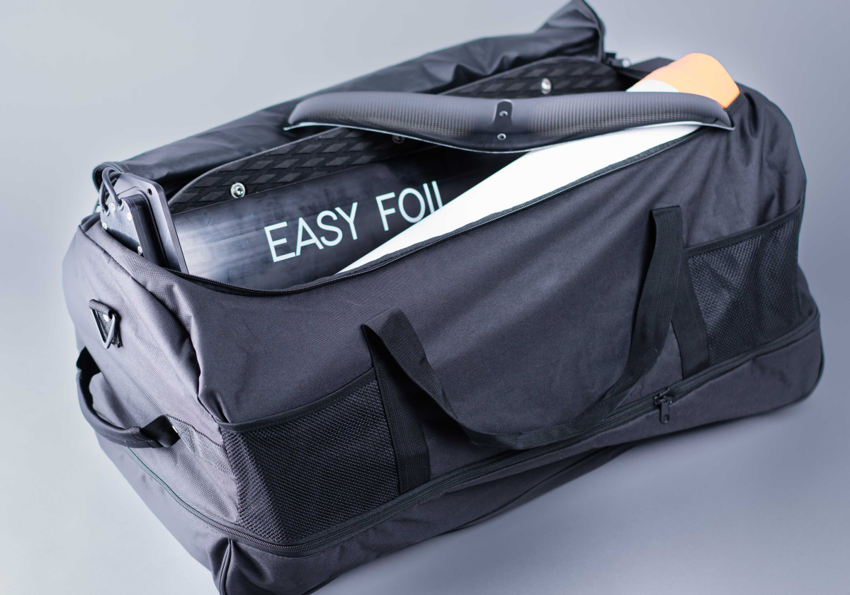 Das gesamte EASYFOIL wurde so entwickelt, dass es in eine Reisetasche passt, welche im Package enthalten ist. Insgesamt wiegt das EASYFOIL TWO nur 27 kg und ist damit der leichteste eFoil.