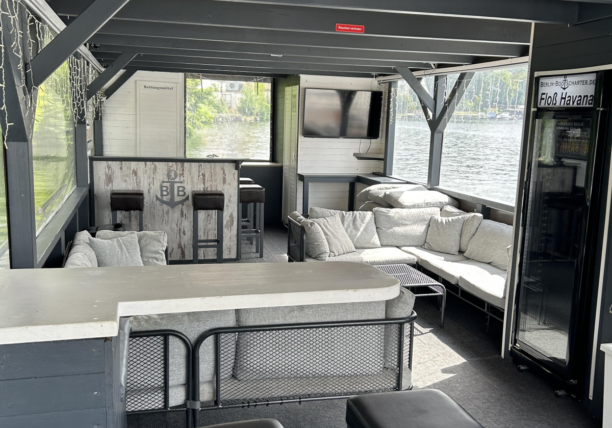 Standort: Das Floss „25 Personen Floss Havana“ liegt in Berlin, Brandenburg, und ist ein idealer Ausgangspunkt für Touren auf den umliegenden Seen und Wasserwegen.