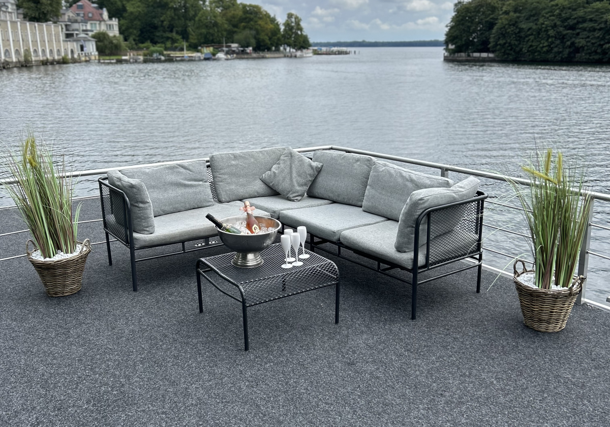 Lounge Floss Havana bietet Platz für Max. 25 Personen. mit einer Nutzfläche von ca. 70 qm auf 2 Decks haben Sie genug platz für einen unvergesslichen Tag auf dem Wasser.