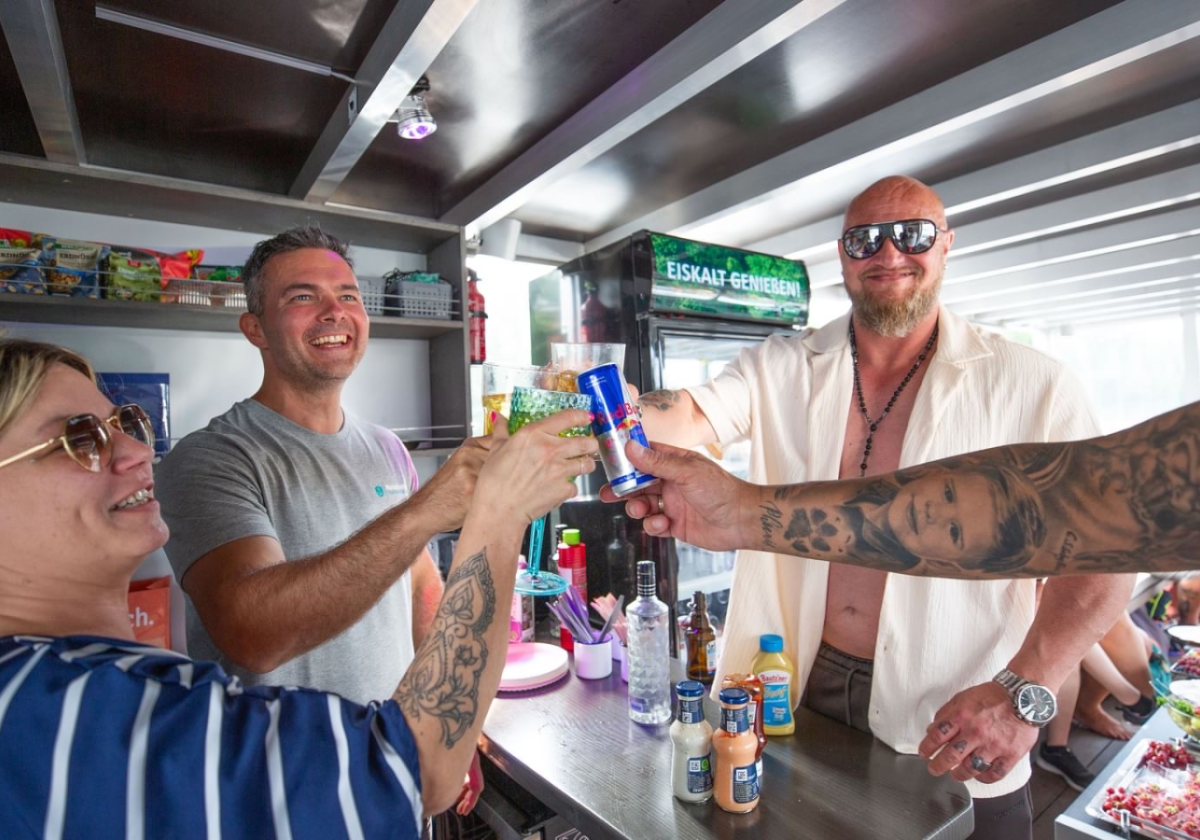 **Buchungsinformationen** Danke für deine Buchung. Unser Event Team meldet sich bei dir und bespricht alle wichtigen Punkte persönlich, damit wir das Event perfekt auf eure Gruppe anpassen, von Ablauf und Zeiten bis zu Getränken, Essen und besonderen Wünschen. **So läuft die Buchung ab** Nach deiner Anfrage prüfen wir die Verfügbarkeit und bestätigen den Termin verbindlich. Du erhältst alle Details zusätzlich per E Mail, inklusive Treffpunkt, Uhrzeit, Ablauf und wichtigen Hinweisen. **Anreise und Check in** Bitte sei pünktlich zur vereinbarten Uhrzeit am Treffpunkt. Verspätungen gehen von deiner gebuchten Zeit ab, da wir Folgetermine einhalten müssen. **Zahlung** Die Zahlungsdetails erhältst du mit der Buchungsbestätigung. **Kaution** Es wird keine Kaution erhoben. **Wetter und Sicherheit** Bei normalem Regen findet die Tour statt. Bei Starkwind oder offiziellen Unwetterwarnungen sprechen wir frühzeitig mit dir eine sichere Lösung ab, je nach Situation und Verfügbarkeit. Sicherheit an Bord hat immer Vorrang. **Wichtiger Hinweis zur Toilette** Damenhygieneartikel dürfen nicht in die Toilette geworfen werden. Sollte es dadurch zu einer Verstopfung kommen, kann es zu einem Abbruch der Tour kommen. In diesem Fall entstehen Reparaturkosten in Höhe von 400 Euro, eine Rückerstattung der Tour ist ausgeschlossen. **Regeln an Bord** Bitte bring einen gültigen Ausweis mit. Glas, Konfetti und ähnliche Streudeko sind nur nach Absprache erlaubt. Rauchen ist nur in den dafür vorgesehenen Bereichen möglich. Wir achten auf einen respektvollen Umgang mit Nachbarschaft und Umwelt.
