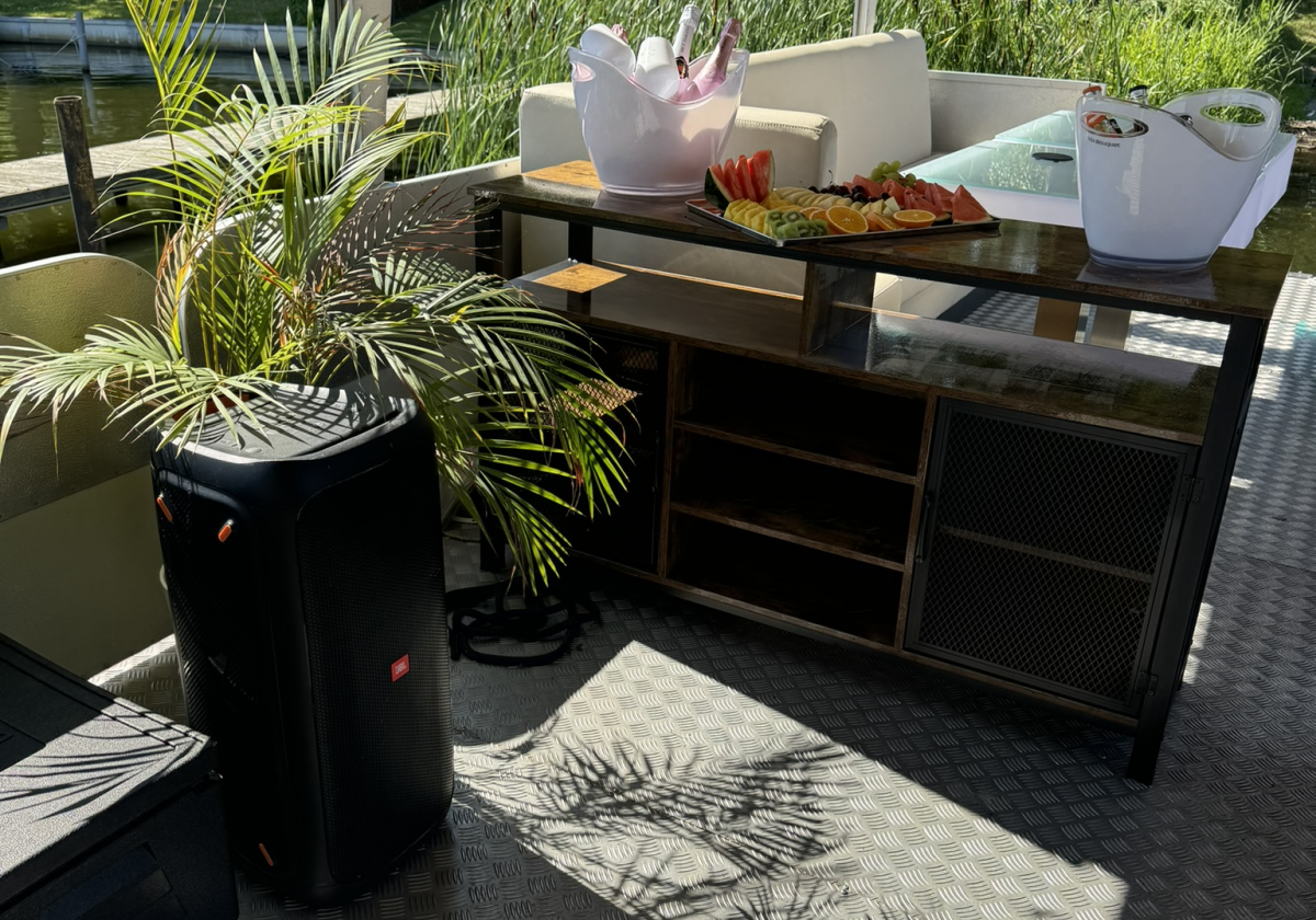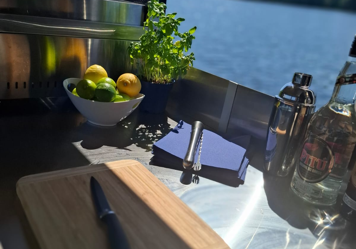Ein professioneller Gastrogrill, Liegeloungen, und eine hervorragende Musikanlage runden das Angebot ab. Ebenso können Ihre Mobilfunkgeräte geladen werden und ein Kühlschrank hält stets frisch gekühlte Getränke bereit.