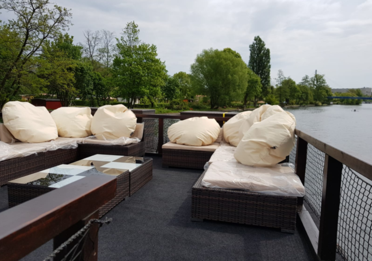 Das 25 Personen Floss Havana ist ein großzügiges Party und Eventboot in Berlin, das wie gemacht ist für unvergessliche Tage und Abende auf dem Wasser. Auf rund zwölf Komma fünfzig Metern Länge und vier Komma fünfzig Metern Breite entsteht ein offenes, luftiges Raumgefühl, in dem sich deine Gäste frei bewegen, unterhalten und entspannen können. Das Unterdeck bietet eine gemütliche Lounge mit viel Sitzfläche, ideal für gemeinsame Essen, Gespräche und entspannte Stunden, während das obere Deck als Dachterrasse mit weitem Blick über das Wasser einlädt, die Stadt aus einer völlig neuen Perspektive zu erleben.