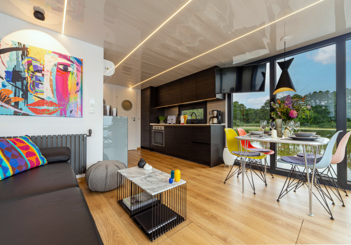 Bei der Einrichtung des Hausbootes wurden durchweg Luxus-Designermöbel namenhafter Designer verwendet.