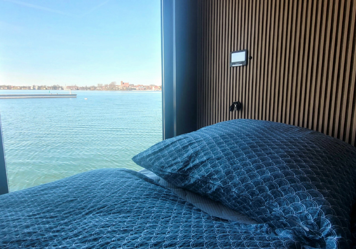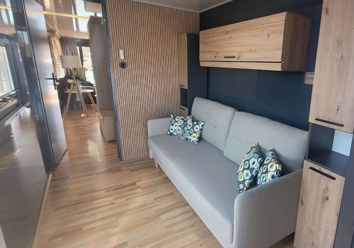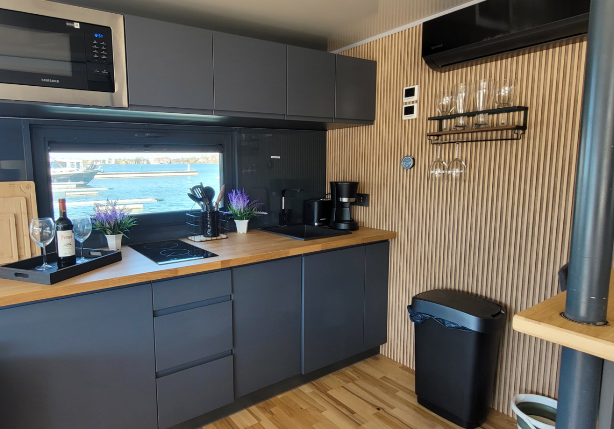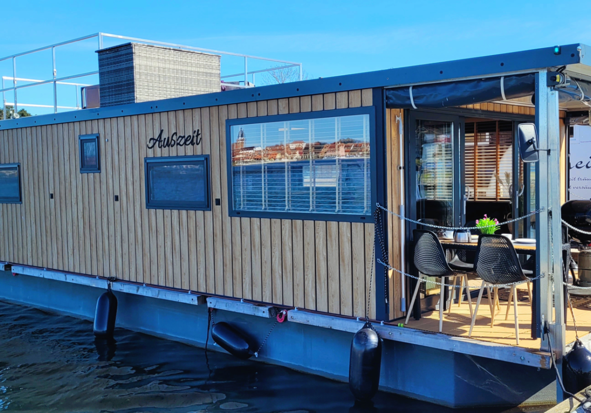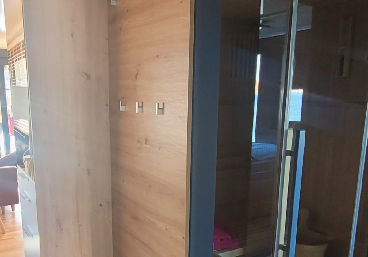 Auszeit mit Sauna, modernes Hausboot trifft auf finnische Sauna