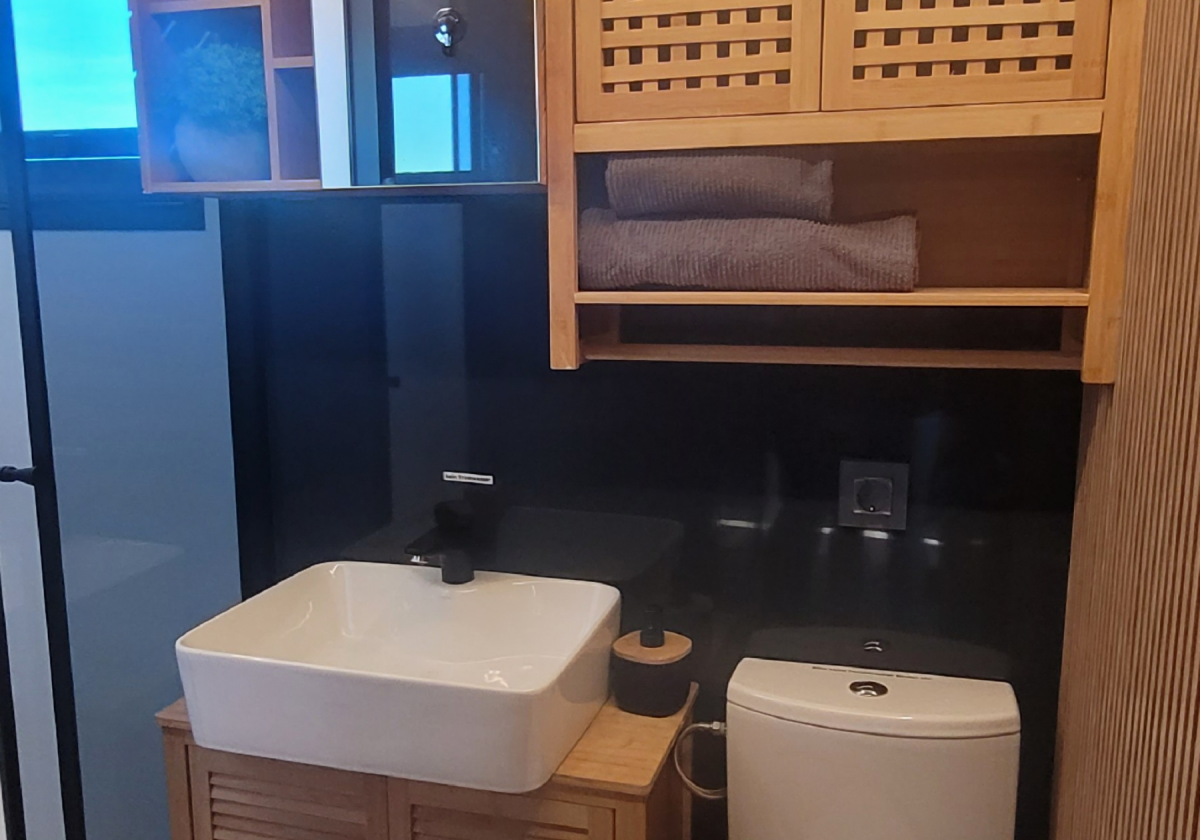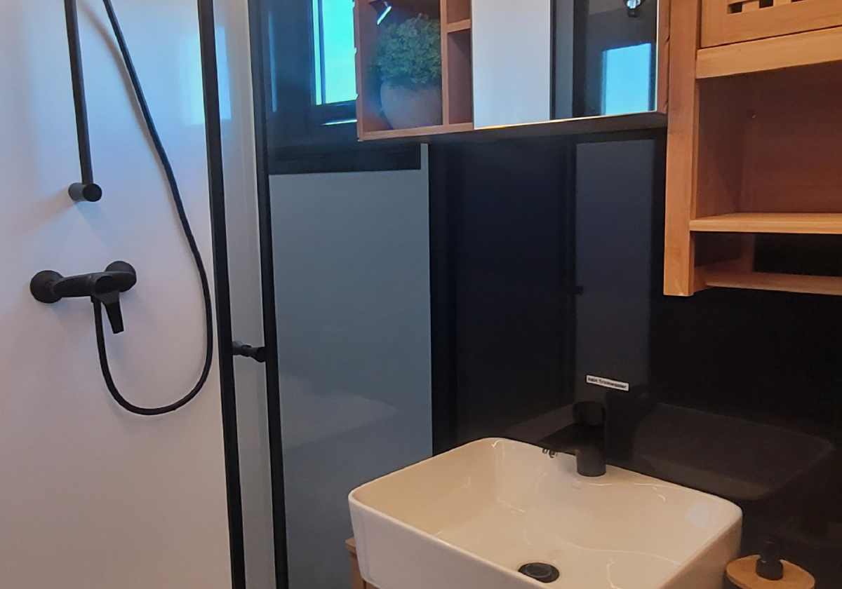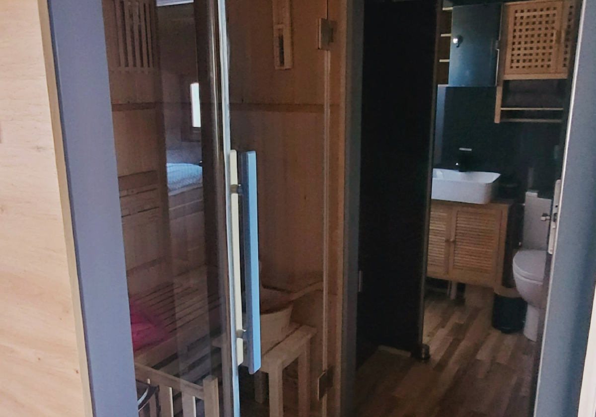 Im Bad finden Sie ein stilgerechtes Aufsatzwaschbecken mit Unterschrank, Hängeschränke für Ihre Badutensilien, Spiegelschrank sowie WC und Dusche. Wenn das Wetter schlechter wird oder in der kalten Jahreszeit ist Sie in absolutes Highlight, die an Bord befindliche Elektro Sauna, mit genügend Platz für zwei Personen.
