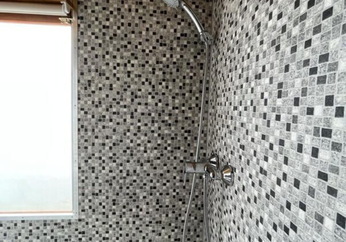 Mit an Bord befindet sich eine Nasszelle mit WC und Dusche.