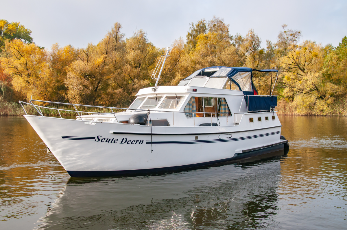 Die Seute Deern bietet für bis zu sechs Schiffsreisende viel Platz, Komfort und Rückzugsmöglichkeiten. Zwei Kabinen an Bug und Heck mit Doppelbett werden um eine weitere Seitenkabine mit Stockbett ergänzt. Eine ideale Aufteilung zum Beispiel für Familien mit zwei Kindern und mitreisenden Großeltern. Zwei Fahrstände – innen und außen – machen den Urlaubstörn wetterunabhängig. Als Kombüse taugt die Pantryküche allemal und der holzgetäfelter Salon sowie das Achterdeck bieten genügend Platz zum Sitzen, Speisen und Klönen. Dank Bugstrahlruder gelingen Hafenmanöver leichter, aber mit der Badeplattform stehen auch Ankerstunden hoch im Kurs.